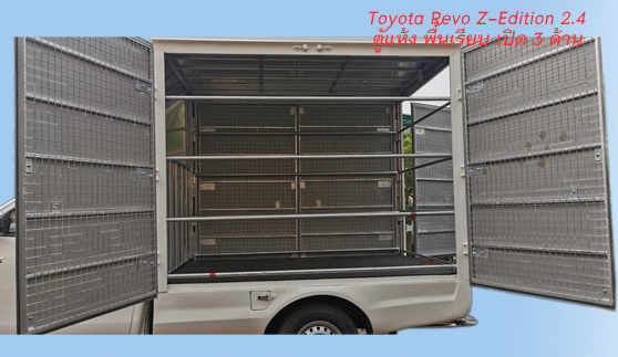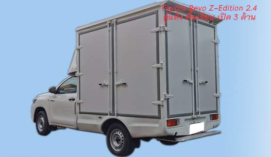 ตู้แห้ง พื้นเรียบ สามารถ กันน้ำได้ 97-100% สูง 1.7 เมตรจากพื้นกระบะ เสริมแหนบเรียบร้อยแล้ว รองรับน้ำหนักที่บรรทุกได้มากขึ้น ด้านข้าง สามารถเปิดได้ 3 ด้าน รถโฟร์คลิฟท์ตักพาเลทได้สะดวก