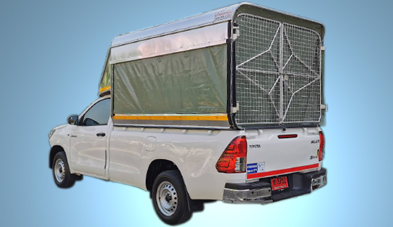 หลังคาเป็นอลูมิเนียม ด้านข้างและด้านหลัง เป็นตะแกรง มีผ้าใบปิด เพื่อก่อสร้าง รับเหมา งานที่ต้องการขนทั้งของและคน ถ้าเป็นการขนคนงาน สามารถหาแผ่นไม้มาเสริมนั่งได้ ผ้าใบสามารถม้วนพับขึ้นเก็บได้ เมื่อไม่ต้องการใช้งาน